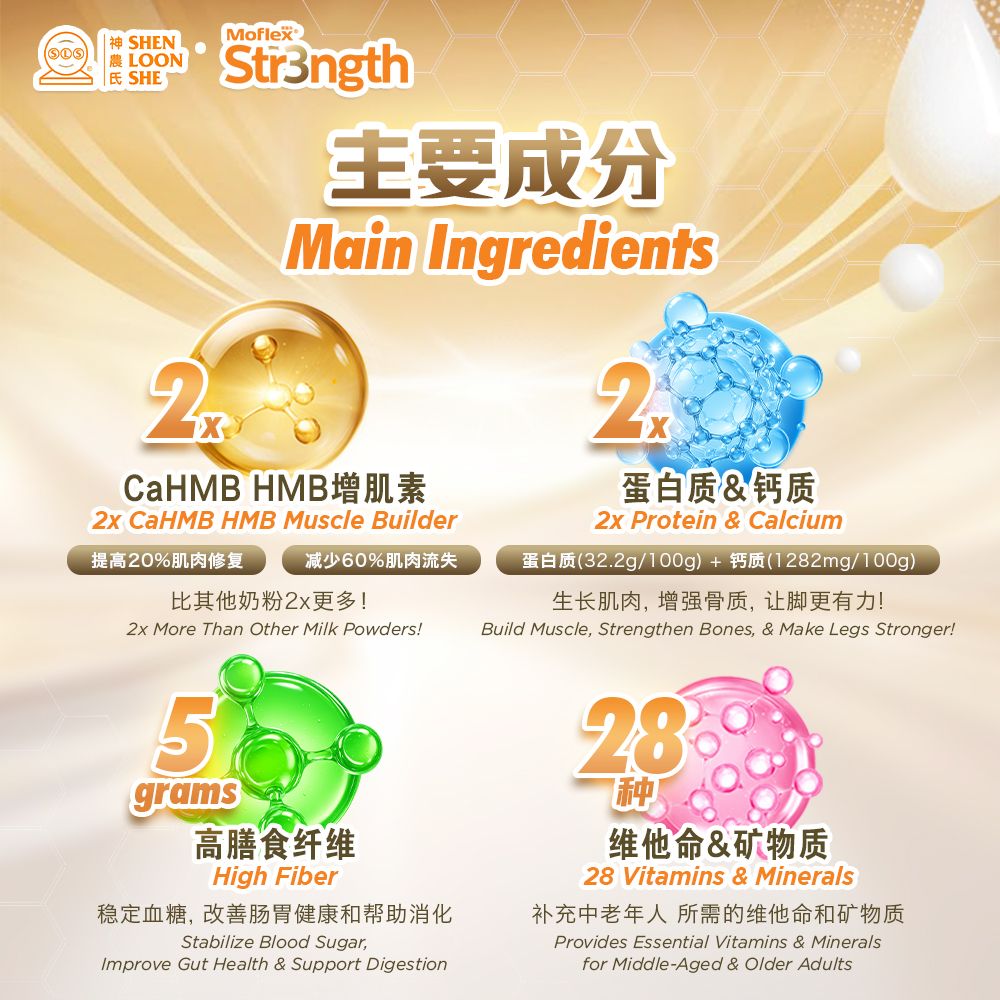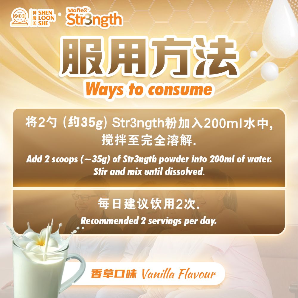 Stay vitality as the years go by with Str3ngth, the plant-based complete nutrition designed to support the desired needs of adults and the elderly. Powered by wholesome botanical ingredients, it delivers a balanced blend of essential proteins, fibres, vitamins, and minerals as well as CaHMB to fuel strength and daily vitality — all in a delicious formula. Whether you‘re aging gracefully or simply embracing an active lifestyle, Str3ngth helps you move with ease, and keep doing what you love — day after day.