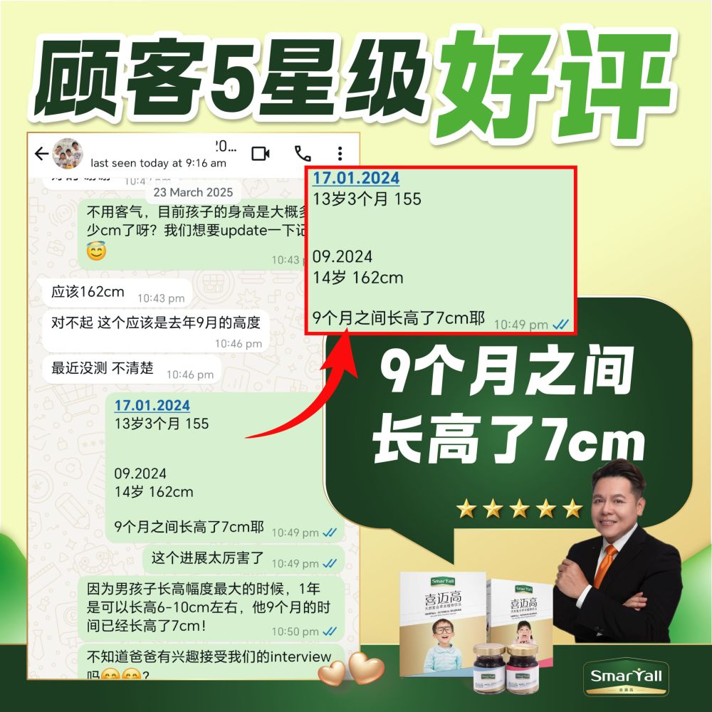 喜迈高(男)能帮助身高发育,补充能量、 还能补肾益气、缓解抑郁、提高营养吸收能力、 肌肉及脑部发育以增强学习能力。