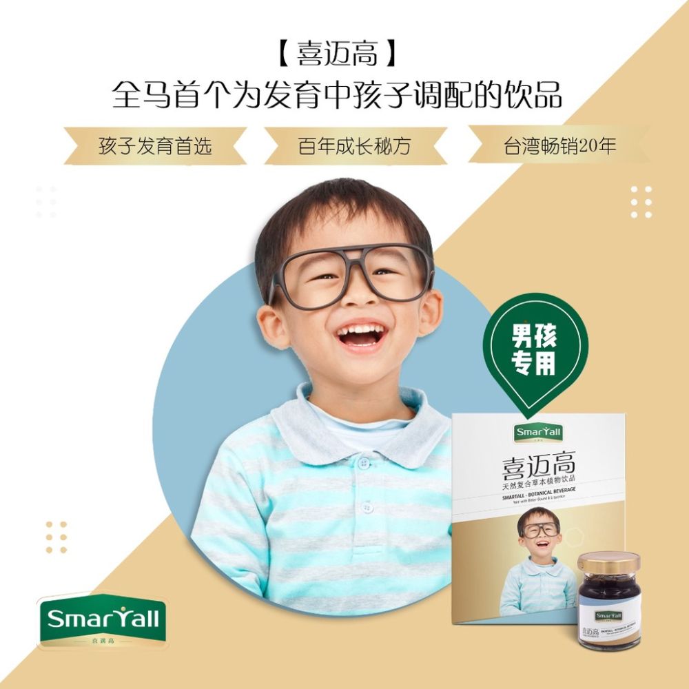 Smartall for BOYS does not only help a boy to grow taller, but supplements vital energy, soothes the liver, relieves depression, develops muscles and improves his nutrient absorption, physical quality as well as his learning ability.