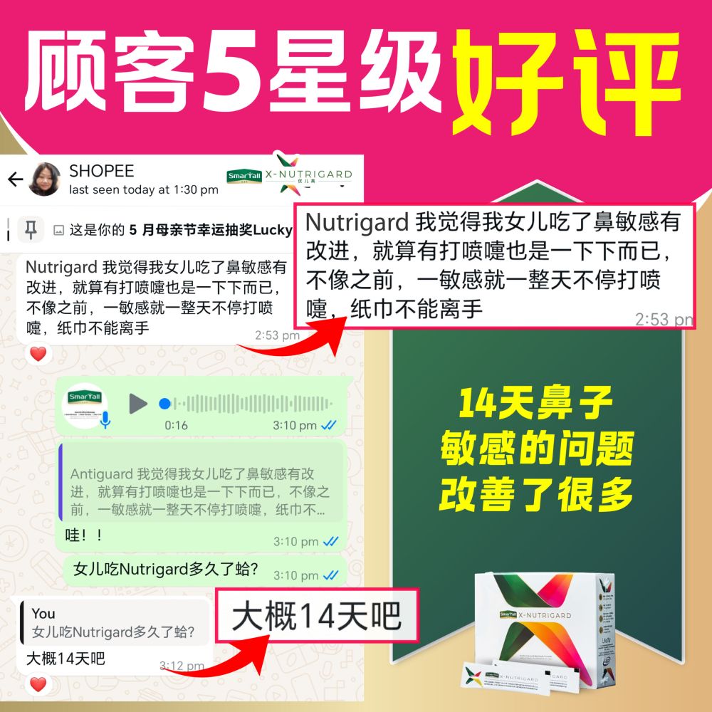 | Recommended Usage 推薦用法 | 2-9 years old take regularly once per day, 10-18 years old twice per day. We believe that you can prove visible growth after 3 months. It is better together with regular exercise and sleep to enhance the effectiveness of Smartall X-Nutrigard. 2-9 岁 每日定时服用1包,10-18 岁 每日定时服用2包,我們相信您可以在 3 個月後證明明顯的增長。 配合規律的運動和睡眠,更能提升Smartall X-Nutrigard的功效。 Powder form, can eat immediately, below 5 years old children we suggest mix the powder with 15ml of water. 粉状, 撕开既可以吃。5 岁以下的小朋友建议,倒入15ml 的水中,溶解后再喝。 |